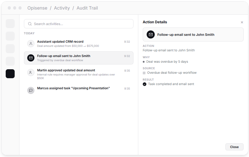 Every action is tracked, explained, and time-stamped—giving you full control and built-in governance across your organization.